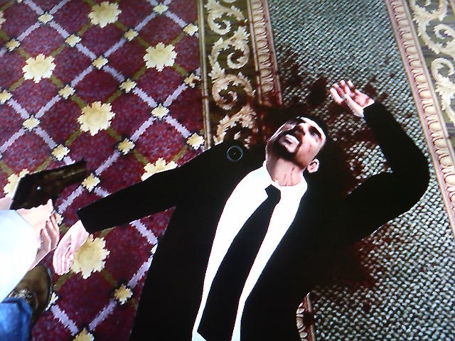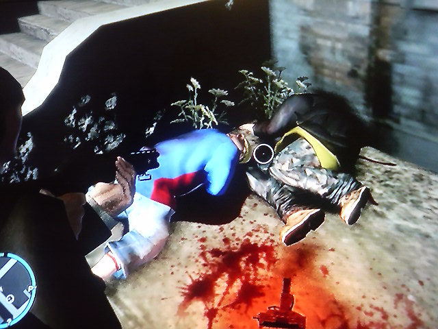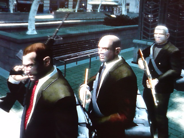 真ん中のスキンヘッドが腕撃たれてますね未熟者め